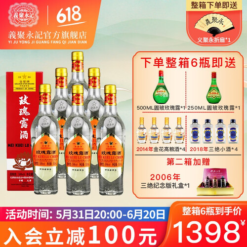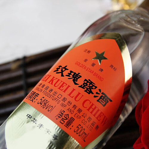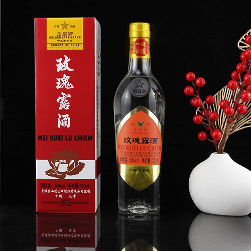 以高粱酒为原料加以重瓣红玫瑰,品之略带甜味,饮之爽心益神。以整朵玫瑰花蒸馏,玫瑰清香纯正,余味爽净且恰到好处。