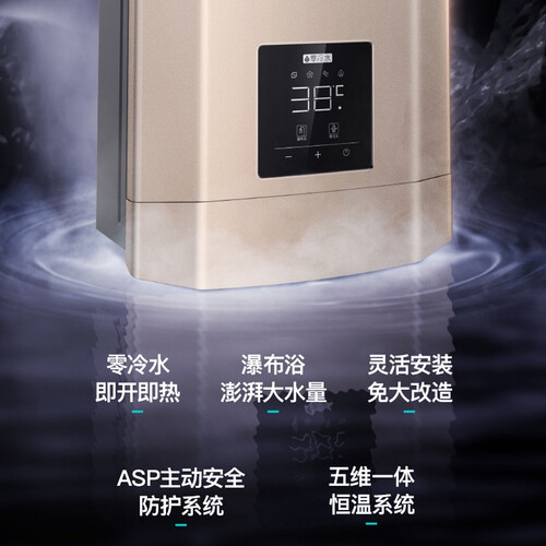 内置直流变频水泵,可以快速抽回冷水并加热,用热水免等待。一键开启瀑布浴功能,提升70%以上的水流量。