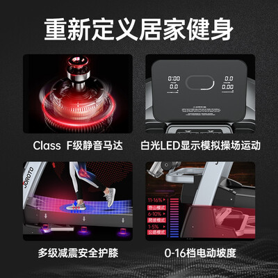甄选减震系统,能够有效保护膝盖不受损伤,贴心守护你的运动安全。加宽加长的钻石纹路跑带,防滑耐磨,提升运动舒适度。
