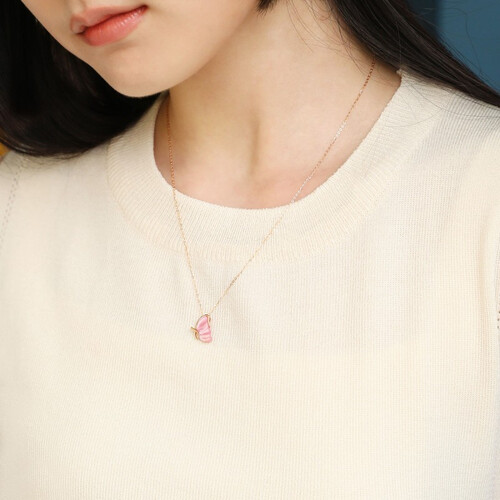 这款项链采用优质玫瑰金,搭配色彩鲜艳的贝母,让这款蝴蝶造型的项链,展现出温暖动人的,立体感色彩。