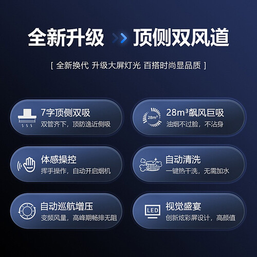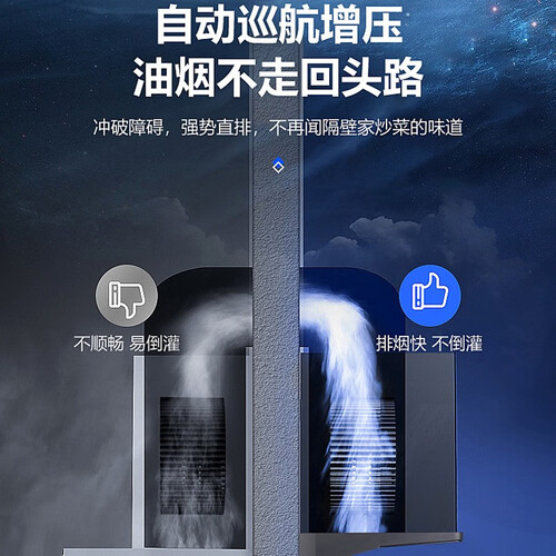 智能烟灶联动,在感应到油烟以后,会自动开启吸烟,使用省心。自动巡航增压排烟,让油烟快速排出,不倒灌。