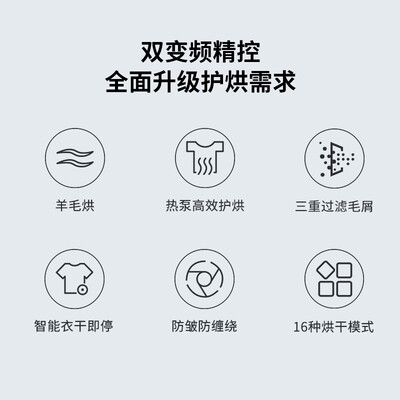 特别设计专业羊毛烘程序,帮助呵护羊毛面料,避免缩水变形。16种调节模式,应对不同衣物的烘干需求,满足个性化使用。