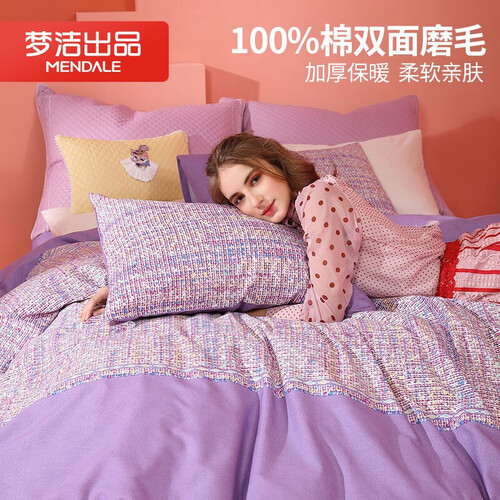 梦洁 格纹磨毛 四件套