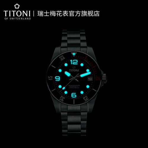 拥有600米深度防水的设计,能轻松潜入水下,不易迷失时间与方向,还覆盖了夜光涂层,在水下更有安全感。