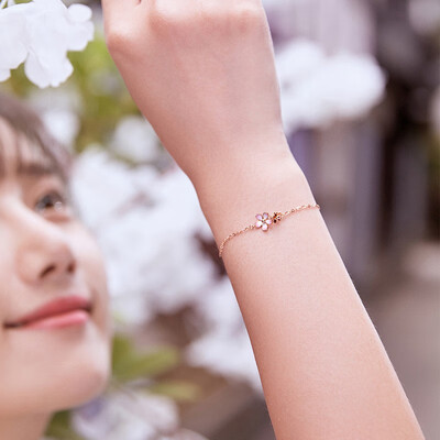 以粉色渐变珐琅点缀樱花,造型甜美灵动,与少女的温柔气质相吻合。优选18K金材质,质地坚硬不易变形。