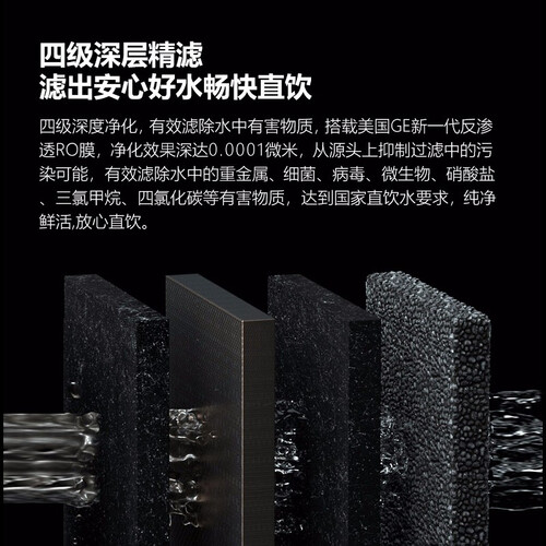 采用四级深层精滤设计,可以从源头上抑制过滤中的污染可能,纯净鲜活。采用不锈钢复合加热体,不用在担心喝上千滚水。