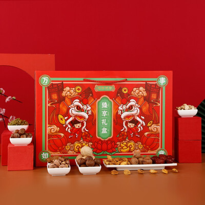 精选品质坚果,迎合大多数人的口感,精心制作,吃下去的每一口都是兴奋的享受。龙腾舞狮包装,喜庆十足,送礼好看。