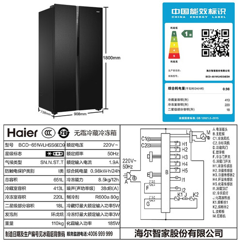 海尔 变频 对开门冰箱