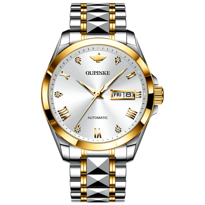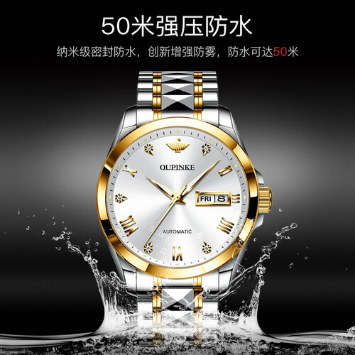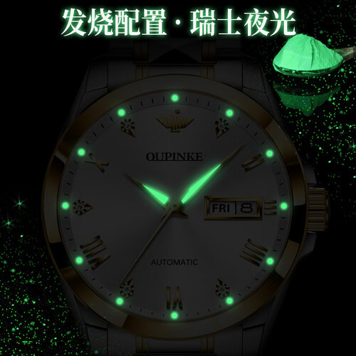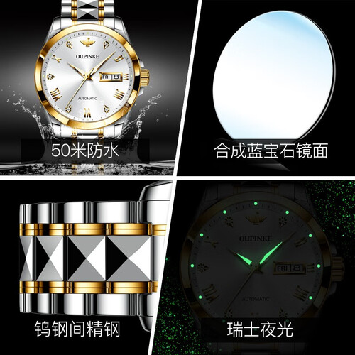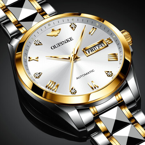 进口全自动机械机芯,高达10年质保,比普通机芯持久耐用。钨钢搭配精钢制成的表链,每一粒都经过细致人工打磨,佩戴舒适。