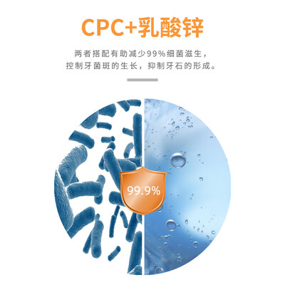 含有CPC,可抑制细菌滋生,深层洁净,令牙齿保持洁净。锌离子,能够控制牙菌斑的生长,拒绝牙石。
