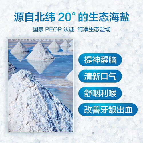 温和配方不添加酒精,无人工色素,安全无刺激,放心使用。添加生态海盐成分,抑制细菌滋生,从根源减轻口臭。