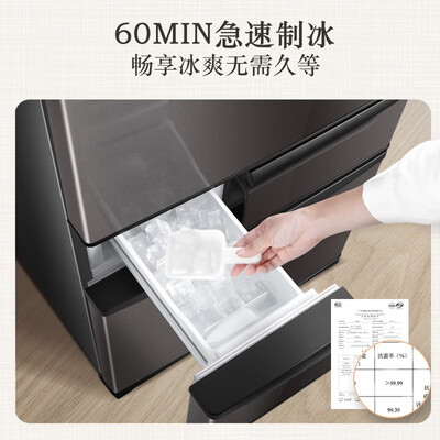 采用无霜冷冻科技技术,持久维持冷冻室温度,生鲜食材久冻不结霜。贴心设置制冰室,一小时快速制冰,畅享冰凉沁爽饮料。