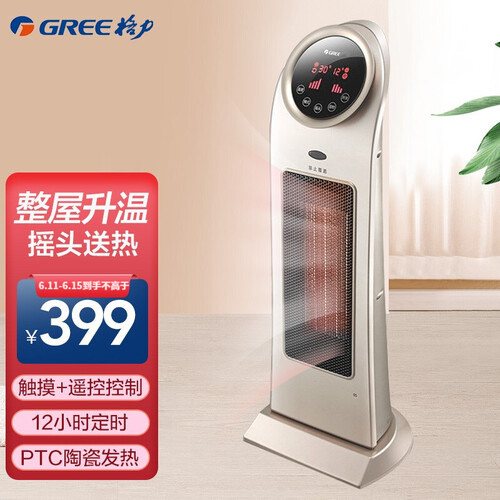 陶瓷发热技术搭配摇头送风,超广角升温,迅速温暖到每一个角落。配置显示屏调节,简单易懂触摸式按键,轻松方便调控。