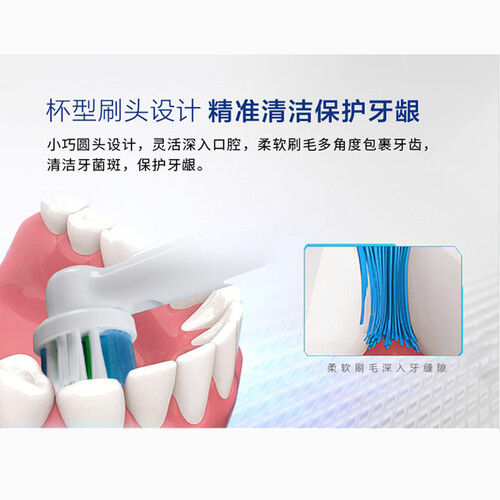 专业的柔软洁牙设计,深入口腔难刷部位,洁净不伤牙龈。刷毛中间内凸,杯型更贴合牙齿,适合更专业的口腔护理人士。