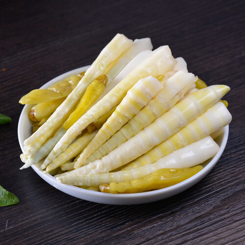 甄选高山竹笋,质地鲜嫩,根根纤细。加入新鲜泡椒调味,口感酸脆鲜辣,咸淡适中,非常适合煲剧时刻品尝食用。