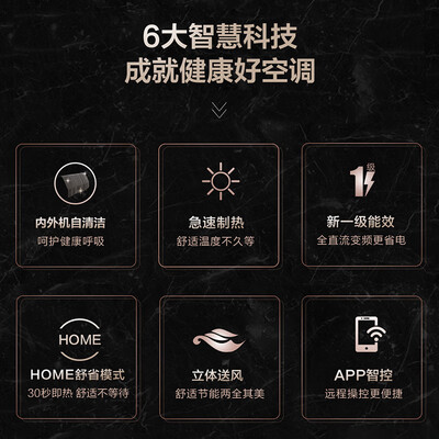 内外机双自清洁设计,高密度滤网配合一键自清洁技术,保证出风洁净。一键启动HOME,智能控制传感器,室内温度更适宜。