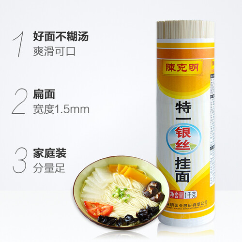 1KG分量,定量煮制,轻松满足小家庭食用需求,减少浪费。面条呈银丝状,根根均匀,不仅耐煮不糊汤,口感更爽滑醇厚。