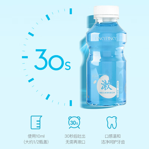 外观采用饮料瓶的造型,十分新颖;口味有柠檬和薄荷,分别是明黄色和天蓝色,使用不辣口,十分舒适。