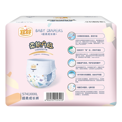 严选加高弹力环腰围,可以紧密贴合宝宝身体曲线,减少侧漏尴尬。含有吸水因子,吸收快速且多量,日夜均可以使用。