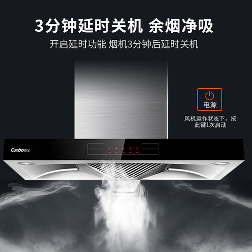 时尚触控按钮,操作简单方便,老人也能轻松操作。二挡风量设计,风量任意调节,从容应对不同烹饪,节能更省电。