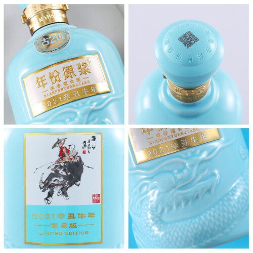 以蓝釉烧制的瓶体包装,辅以腾龙进行点缀,更显恢弘磅礴之势。清晰明亮的辛丑字样,更有纪念意义,适合自囤珍藏。