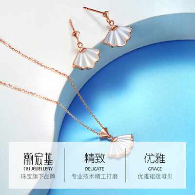 潮宏基 母贝珍珠彩金项链