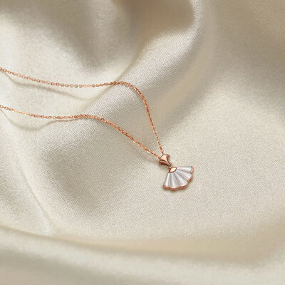 幻彩母贝的小裙子吊坠,边缘包裹闪亮的玫瑰金,色泽迷人,演绎经典时尚。款式自带优雅感,佩戴后可点亮穿搭,提升你的女性魅力。