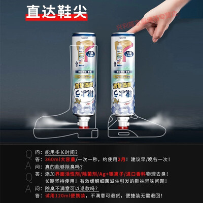 内含柠檬配方,使用过程中能够散发柠檬的清香。除臭配方,快速破坏异味分子,安全使用防臭,倒喷设计直达脚尖。