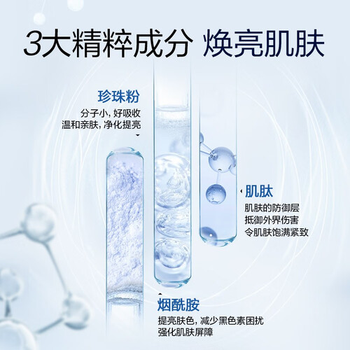 烟酰胺焕亮成分,可以减缓黑色素产生,淡化斑点,令肌肤焕发盈亮光彩。肌肽成分加持,深层滋养提升肌肤活力。