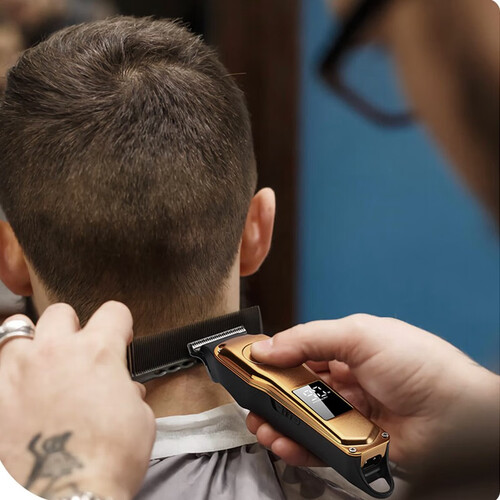 智能高清大屏幕,多少电量心中有数,不必去猜还剩多少电量,薄翼圆角精钢刀头,使刀头更加耐用,5款限位梳,长短造型自己掌控。
