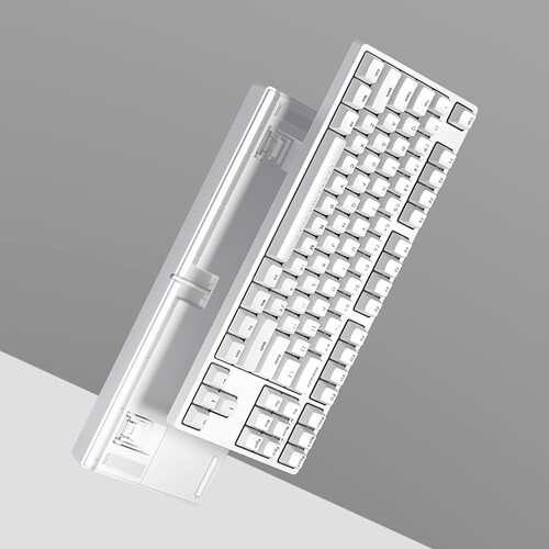 这款键盘的手感很棒,在使用的时候敲击流畅。键盘的底部带有两端脚撑,使用起来可以形成一个阶梯状,让敲字变得更省力。
