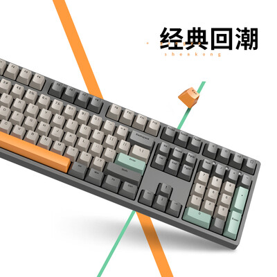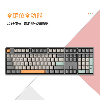 区别于传统键帽的黑色按键,这款键盘采用彩色键帽的设计,增添时尚感。采用二段式支撑脚架设计,高度舒适。