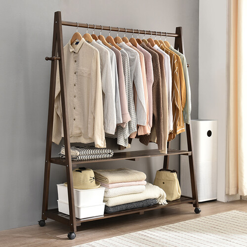 落地式设计,稳固不摇晃不易倒。卡扣横杆设计,合理牢固。加粗挂衣杆,增强承重性,不担心断裂。