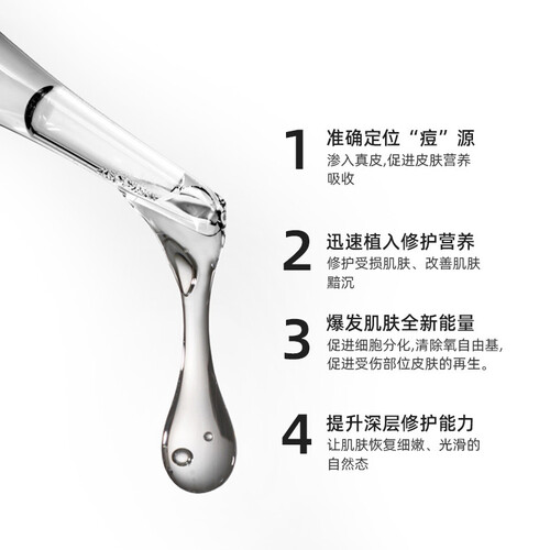 蕴含高浓度寡肽精华,能快速修护痘坑痘印,带来细腻柔滑肤质,不管是新痘还是老痘都能被轻松修护。
