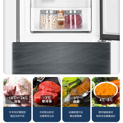 智能双变频的冰箱,搭载变频压缩机和风机,快速制冷的同时静音省电,为食材打造适宜的储存环境,保留每种美味的新鲜。