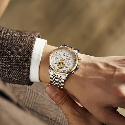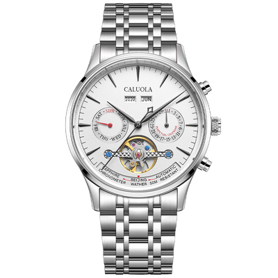 手表整体采用银白配色,不仅便于搭配而且上腕很有儒雅绅士范。带有年历和月份显示功能,帮你记住重要日期。