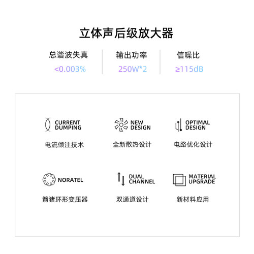 立体声后级放大器,让你身临其境般的聆听感受,尽享优美听觉感受。箭猪环形变压器,声音真实还原,打造更美妙的音乐盛宴。