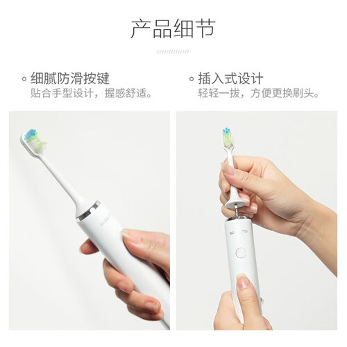 选用插入式的设计,让你轻松更换刷头,给懒人带来更多便利。具有细腻防滑手柄,贴合手部曲线,使用时候舒适而安心。