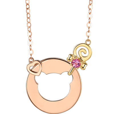 金属成色为18K金,带有闪耀光泽而且十分耐用。还采用了空心小熊设计,加上心形和糖果装饰,美观又有趣。