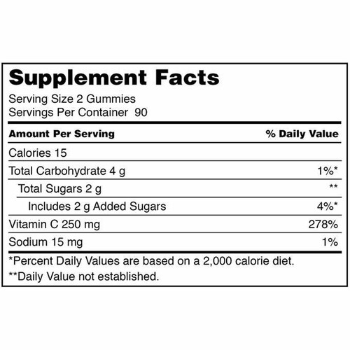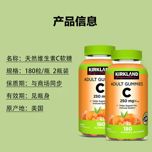 天然维生素C,含量高,每2粒含量高达250mg。经过USP认证,放心服用。软糖设计,吃食更方便。