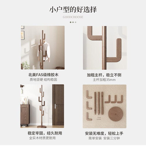 大圆盘支撑的衣帽架,结构稳固可以均匀地分担整体压力,方便挂置更多的衣物,防止发生侧翻倾倒。