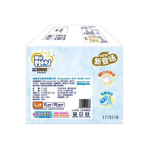 清爽透气材质的底膜,空气快速流通,让小屁屁自在呼吸。设计立体侧围,防止侧漏困扰,安心自在玩,适合好动宝贝。