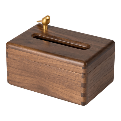 采用进口黑胡桃原木,看起来纹理清晰,彰显大气。实心黄铜小喜鹊的设计,灵动感十足,令纸巾盒仿佛是一件艺术品,观赏味十足。