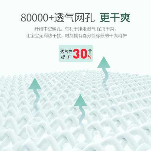 特有的3D柔点接触面,触感柔软且有效提升空气流通性,屁屁干爽不闷热。不含荧光剂成分,宝宝穿着妈妈更放心。