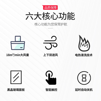 黑晶玻璃面板配置,光滑不挂污,一擦即净,鲜亮如新。结合电热清洗技术,保持烟机内部干净,吸力持久不衰减。
