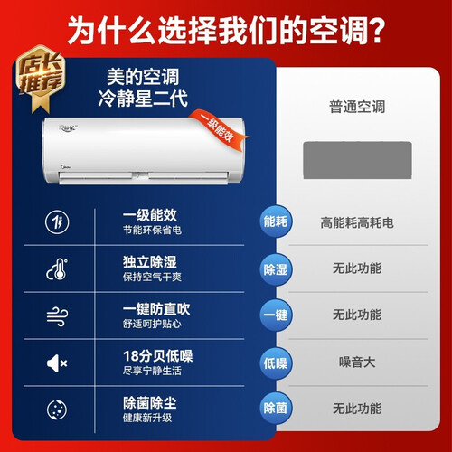 美的 一键防直吹空调