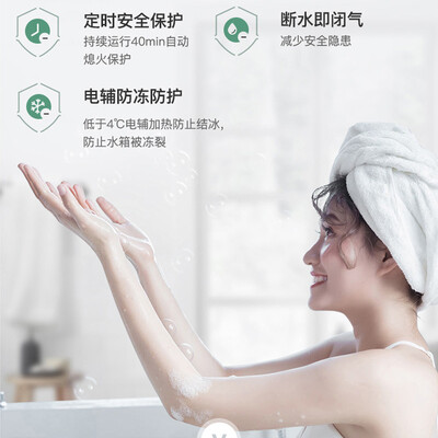 采用电辅防冻技术,无惧室外严寒,冬天使用无忧。内置预警系统,防止CO泄露,全天候为沐浴安全保驾护航,使用更放心。