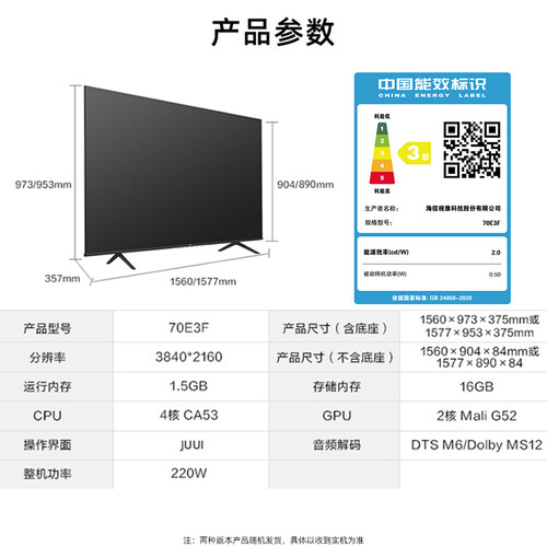 70英寸的巨幕大屏设计,减少窄边框带来的观影困扰,尽享沉浸式观感,配以16GB的大存储空间,畅享多种应用。