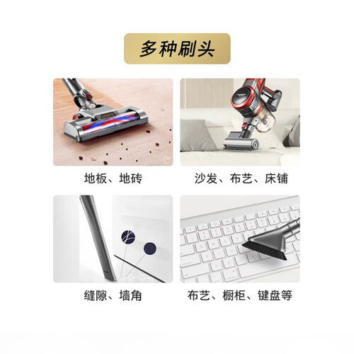 搭载新一代电池管理系统,电量供应智能调节,提升续航时间。自带LED照明灯,清晰照亮床底灰尘,清洁不遗漏。