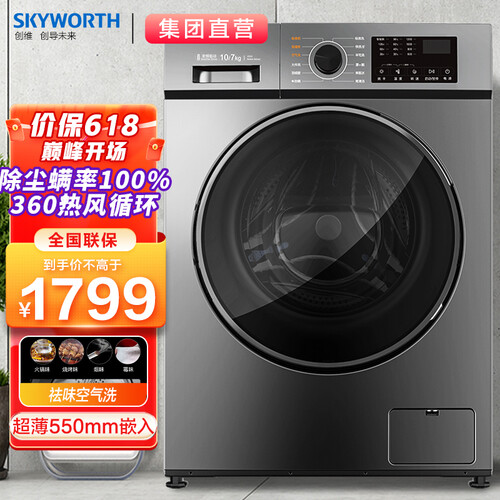 360°热风循环空气洗,有效去除灰尘衣物,减少水洗次数更护衣。75℃高温烘干,快速烘干同时,不算数衣物。